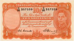 Coombs/Watt, Ten Shillings, 1949, UNC